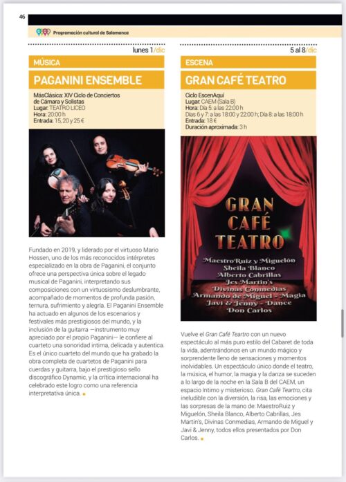 MÚSICA – Paganini Ensemble + Añadir Google Calendar Exportación + iCal / Outlook Fecha Dic 01 2025 Finalizdo! Hora 20:00 - 21:00 Localización Teatro Liceo Plaza del Liceo Categoría EVENTOS Compartir este evento