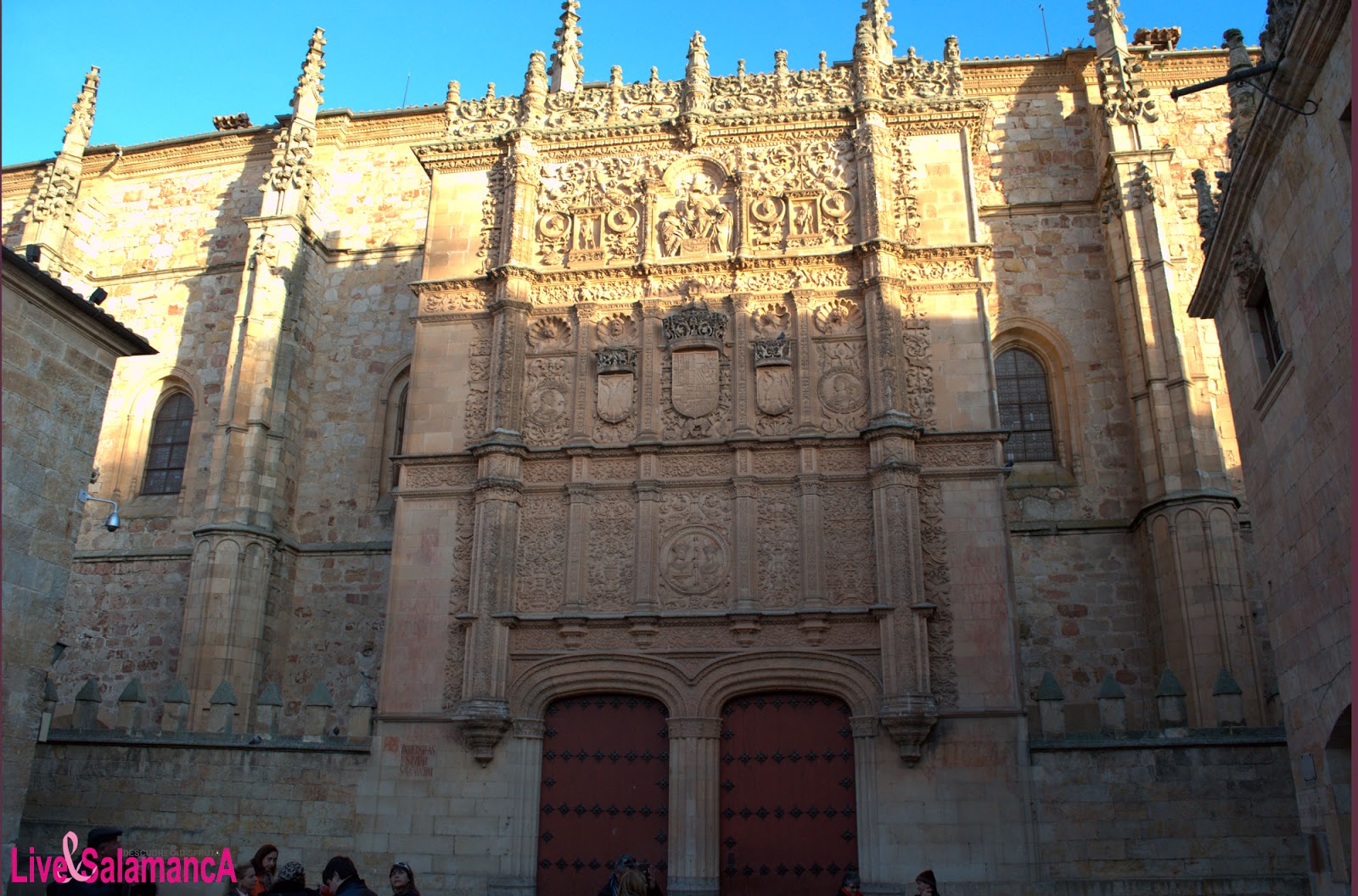 Está construido alrededor de un claustro central con galerías a las que se abren el Paraninfo antiguo, la Biblioteca y una interesante Capilla, obra del arquitecto Juan de Álava. La fachada plateresca, que se abre al Patio de Escuelas, es quizá la enseña más conocida de la Universidad.