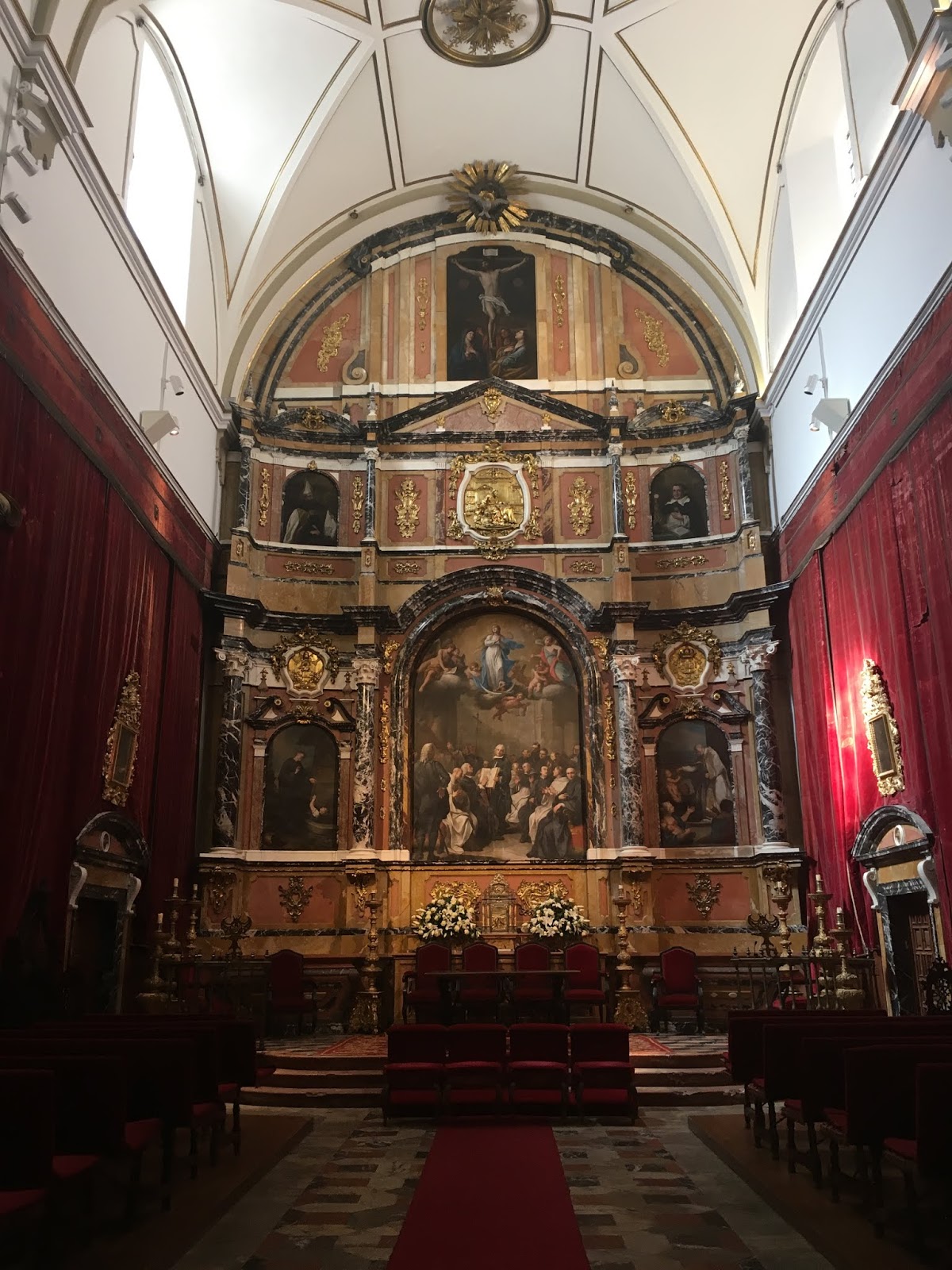 Tras el cuadro central hay un camarín con el sagrario que se ve en Semana Santa o el Corpus. El cuadro desciende para dejar ver este espacio, lo que se denomina retablo de tramoya ya que recuerda al teatro, concepto muy vivo durante el Barroco.